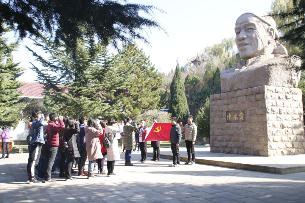 在陈永贵同志的雕像前,王平平书记带领全体党员,面向鲜红的党旗,重温入党誓言。使党员们又一次牢记面对党旗的庄严承诺,时刻用入党誓言来激励自己。